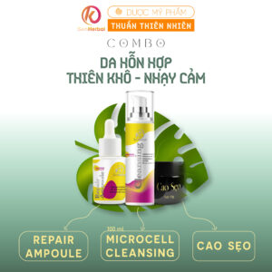 Combo chăm da nhạy cảm, mỏng đỏ yếu, mao mạch, nổi chỉ máu là combo chăm sóc da chuyên biệt dành cho làn da nhạy cảm, mỏng đỏ yếu, mao mạch, nổi chỉ máu gồm Sữa rửa mặt Microcell Cleansing, Tế bào gốc thực vật Repair Ampoule và Kem làm lành vết thương hở Cao sẹo. Cùng khám phá xem combo này có những ưu điểm gì nổi bật nhé!