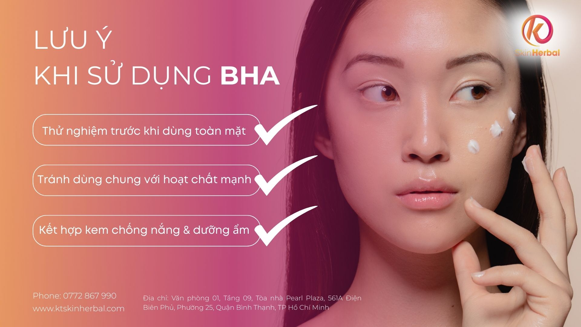 Chỉ nên dùng loại BHA có nồng độ 0.5–1%, với tần suất thấp (1–2 lần/tuần). Cần dưỡng ẩm đầy đủ và tránh kết hợp với các chất tẩy da chết mạnh.