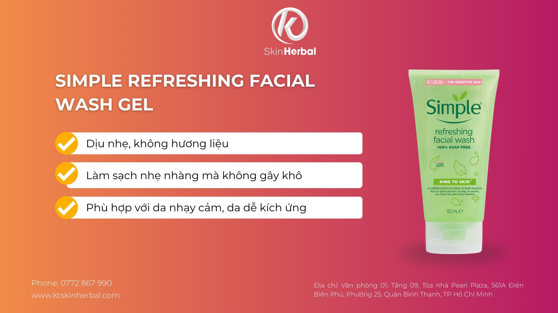 4.3 Simple Refreshing Facial Wash Gel – Dịu nhẹ, không hương liệu
